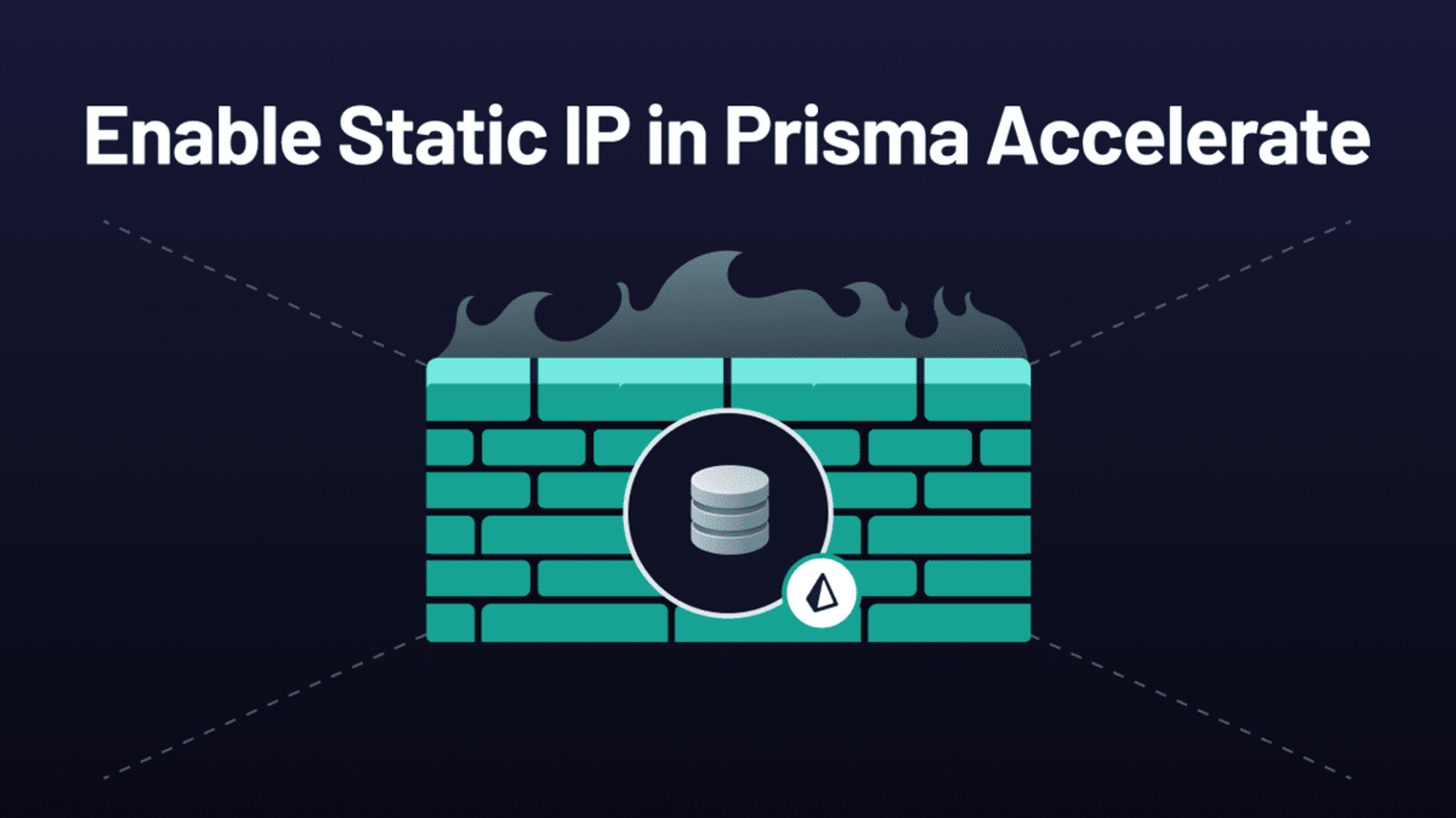 Prisma Accelerate は静的 IP サポートを導入し、予測可能な IP でデータベースへのセキュアな接続を可能にし、アクセス制御と露出の最小化を実現します。これにより、Accelerate から信頼された IP アクセスを必要とするデータベースへの接続が可能になります。