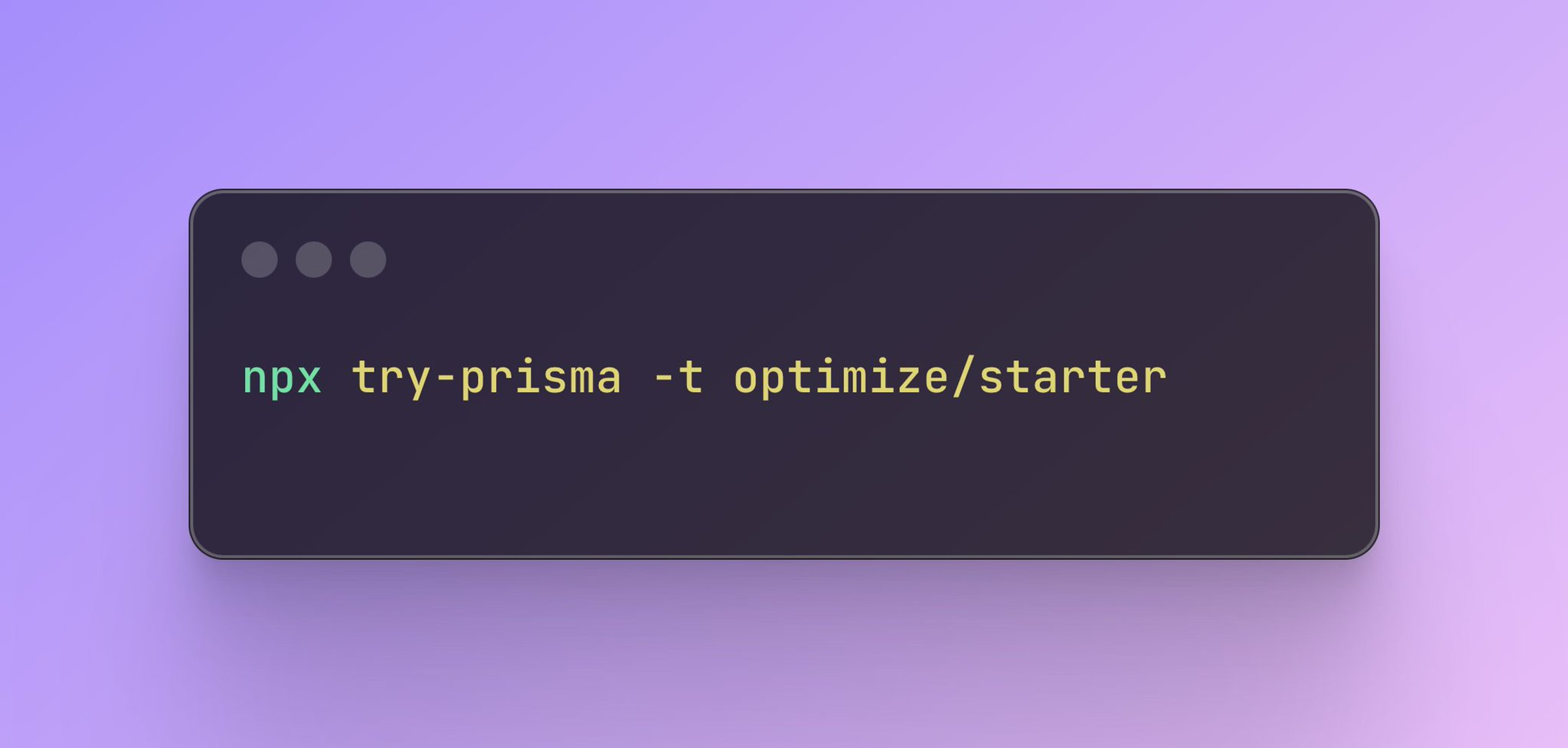 Prisma Optimizeは、アプリケーションの低速なクエリや潜在的な問題を診断するためのクラウドベースのツールです。最近、オンボーディングを全面的に見直し、サインアップから最適化までをより迅速に行えるようにしました!