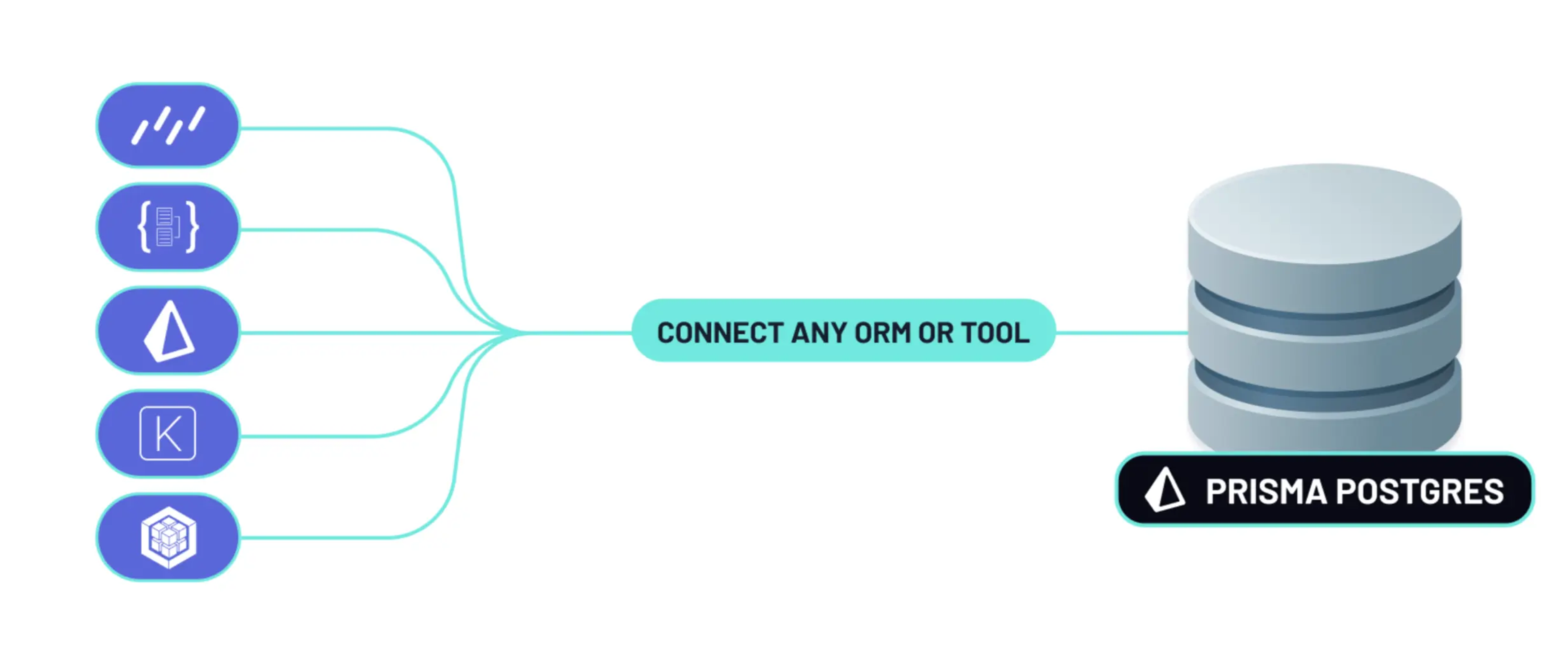 これは変更されました。新しいPrisma Postgresインスタンスを設定する際、通常のPostgreSQL直接TCP接続文字列( postgres://... で始まる)が提供され、Drizzle、Kysely、TypeORMなどのお気に入りのツールやデータベースライブラリを使用して接続できるようになります。