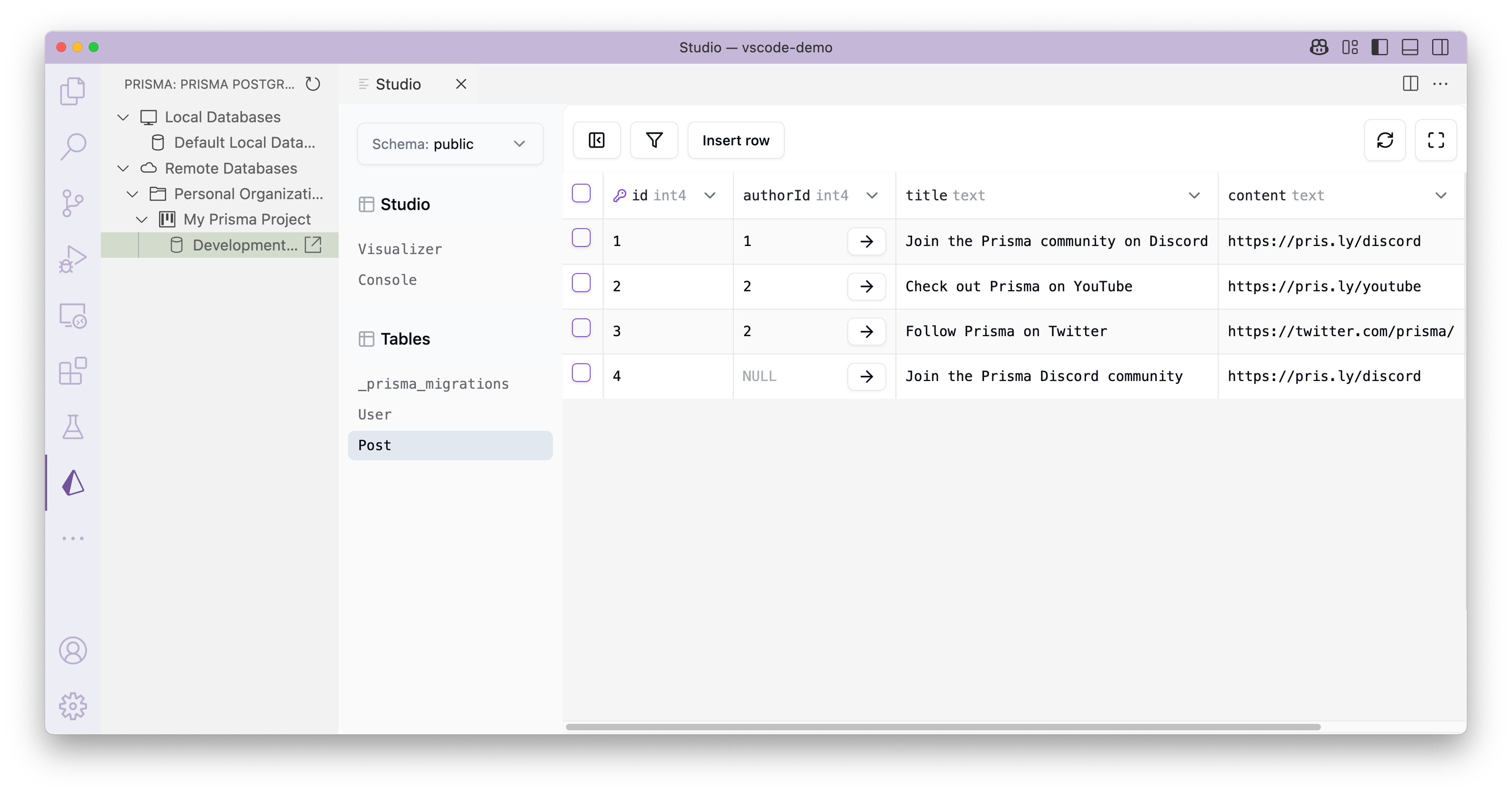 Prisma ORMを使用しているなら、私たち提供の VS Code拡張機能 も使用している可能性が高いでしょう。最新リリースでは、データベース管理用のUIという主要な新機能を追加しました。